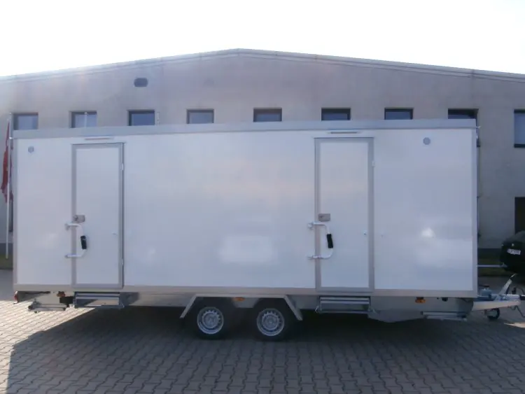 - Fahrgestell: feuerverzinkt mit einer Achse (AL-KO), Auflaufbremse, LED-Rückleuchten 12V, 13-poliger Stecker, 4 Ausdrehstützen, Stützrad-manuell, Räder 155 R13, 80 Km/h.
