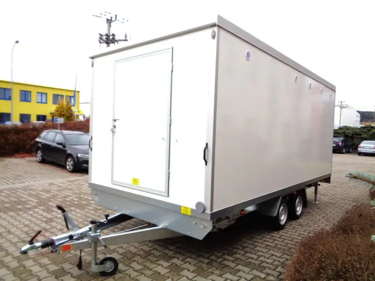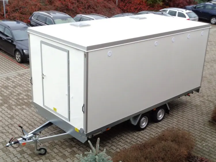 - Fahrgestell: feuerverzinkt mit einer Doppelachse (AL-KO), Auflaufbremse, LED-Rückleuchten 12V, 13-poliger Stecker, 4 Stützen klappbar und ausdrehbar, Stützrad manuell, Räder 155 R13, 80 km/h.